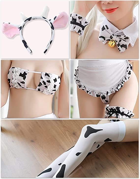 Ailookbuy Women Anime Cow Cosplay Bikini Lolita Cute Lingerie Bra And Panty Set With Stockings