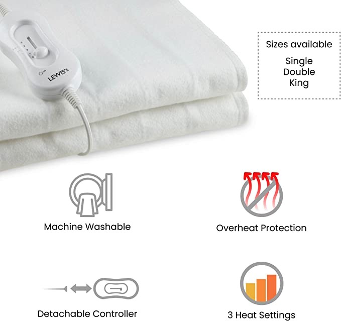 LEWIS'S premium comfort electric blanket-electric blanket-lace design blanket 3 sizes and 3 power settings (King)