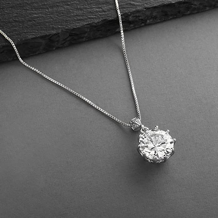Mariell Dramatic 5 Carat ½ Round Cut Cubic Zirconia Solitaire Pendant Necklace - Bold Bridal or Bridesmaid Jewelry, Large, Metallic Stone, Cubic Zirconia