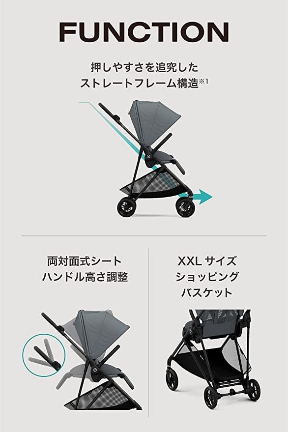 • [Easy to carry] Its weight is only 5.8 kg (MELIO CARBON), which is very outstanding in the history of CYBEX brand. It's so light that it can be folded and taken with you, even when going up and down stairs. It can also be easily tucked into a car.
