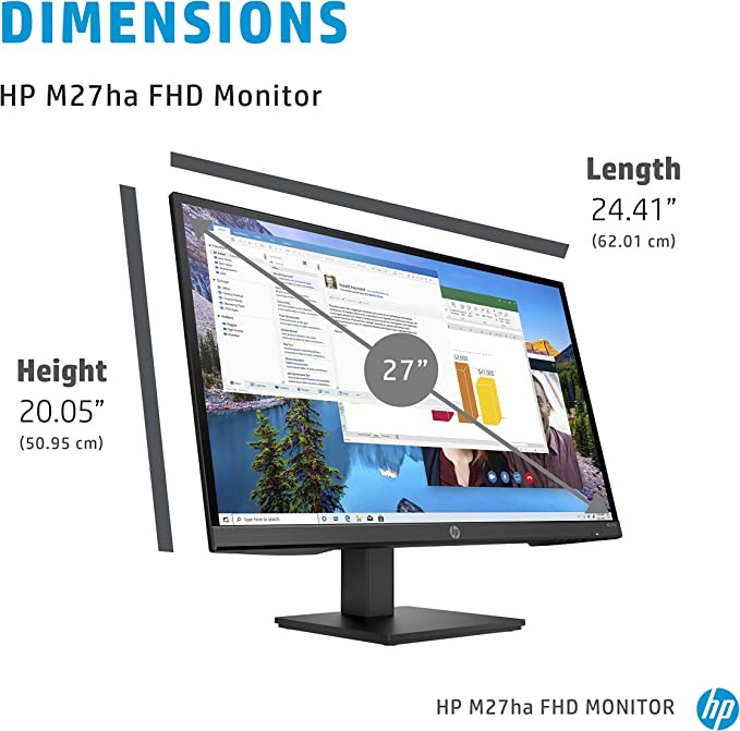 HP M27ha FHD Monitor - Full HD Monitor (1920 x 1080p) - IPS panel and built-in audio - VESA compatible 27-inch display design for comfortable viewing Height and pivot adjustable - (22H94AA#ABA)