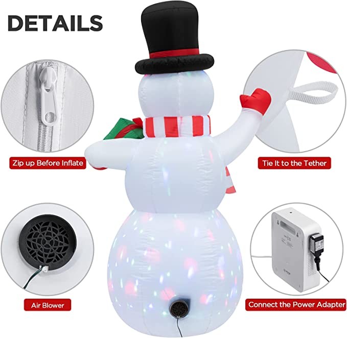 MAOYUE Christmas Inflatables, 5FT Outdoor Christmas Decorations, Inflatable Snowman Blow up Built-in Colorful Lights with Sandbags,Tethers, Stakes for Holiday, Outside, Yard, Lawn, Garden