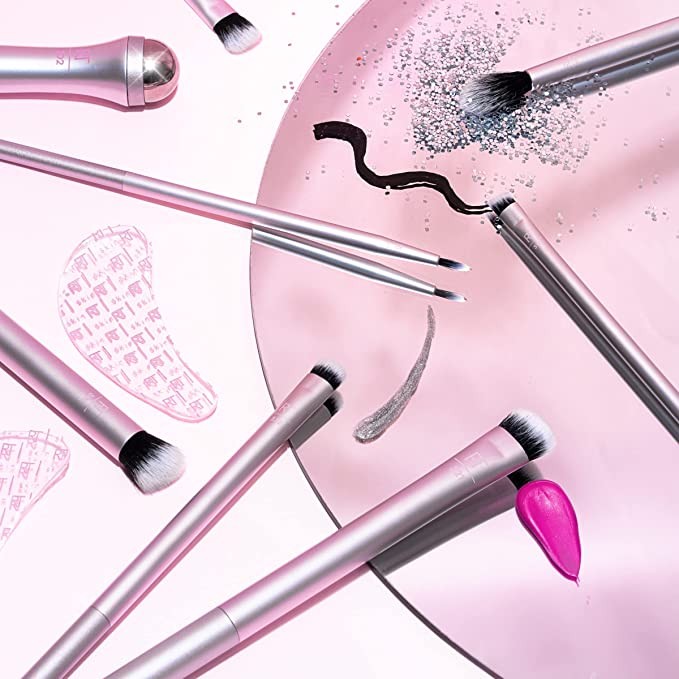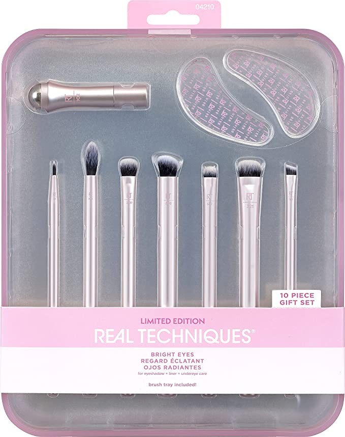 REAL TECHNIQUES Bright Eyes Makeup Brush Set, Professional Eye Brush Set, Soft Bristles, Eyeshadow, Brow, Blending, Scalloped and Lash Makeup Brushes, Set of 10