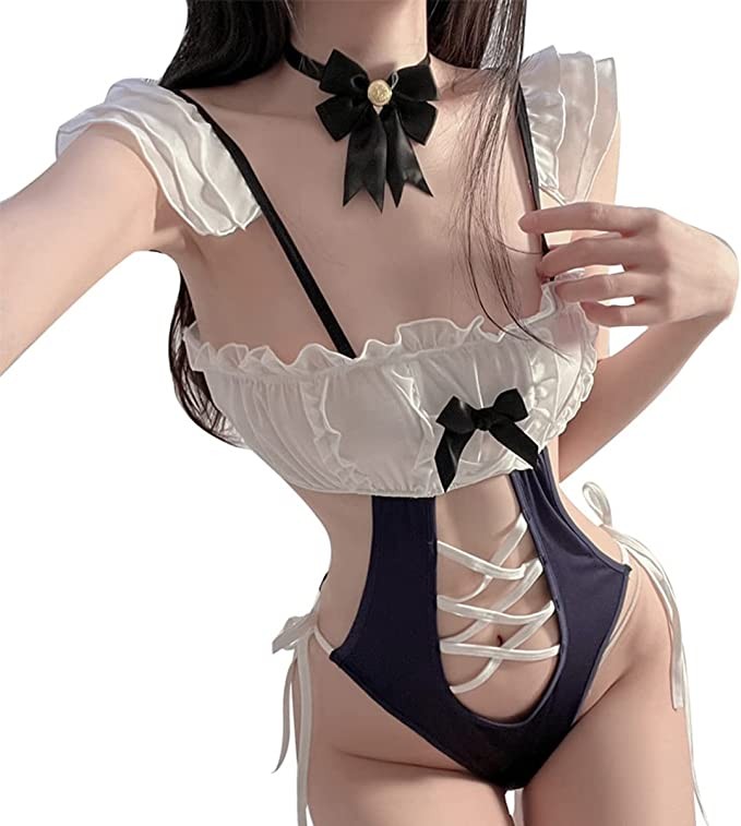 SNOMYRS Kawaii Lingerie Cutout Maid Sexy Cosplay Lace Bodysuit