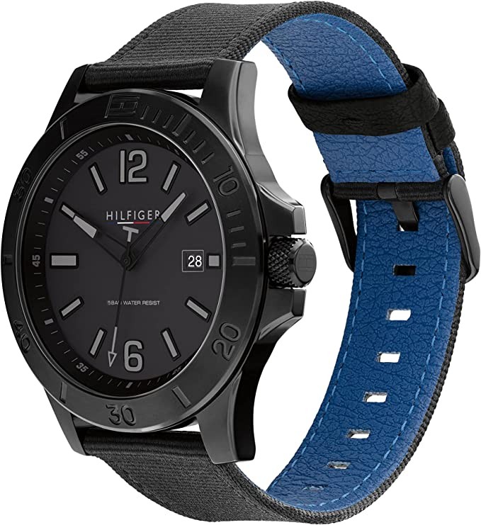 Tommy Hilfiger Men's Analog Quartz Watch, Leather Strap 1791993, Black, One Size, Lace-Up.